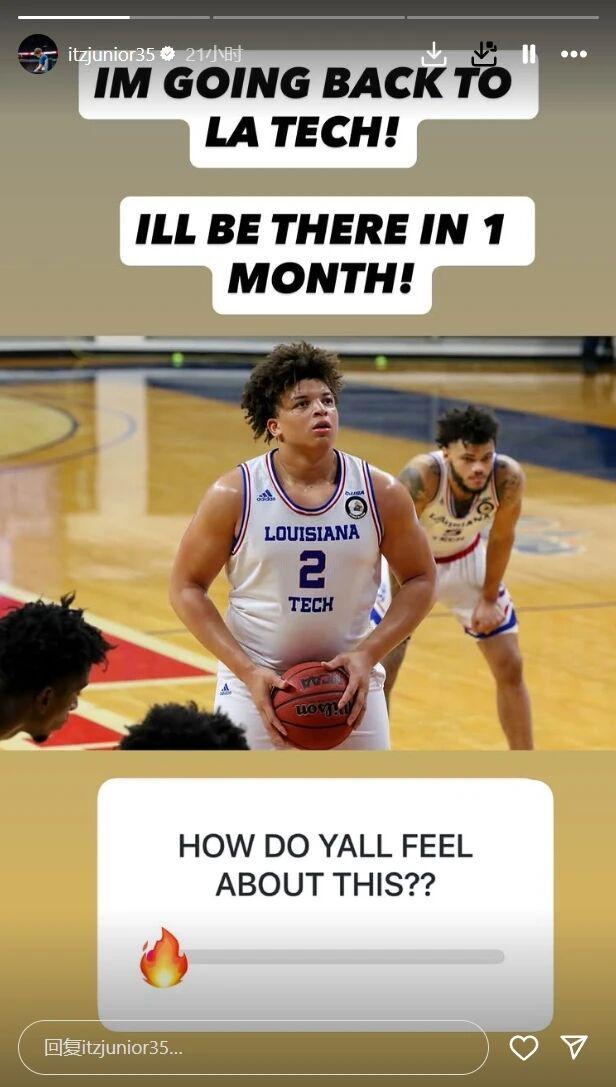 北京时间27日中午,洛夫顿突然在自己的个人Instagram故事宣布,他将回到自己的大学母校路易斯安那理工大学,洛夫顿写道:“我会回到LA TECH,我一个月后就会回到那儿。”不仅如此,洛夫顿还晒出了自己曾经在路易斯安那理工大学打球时的照片。